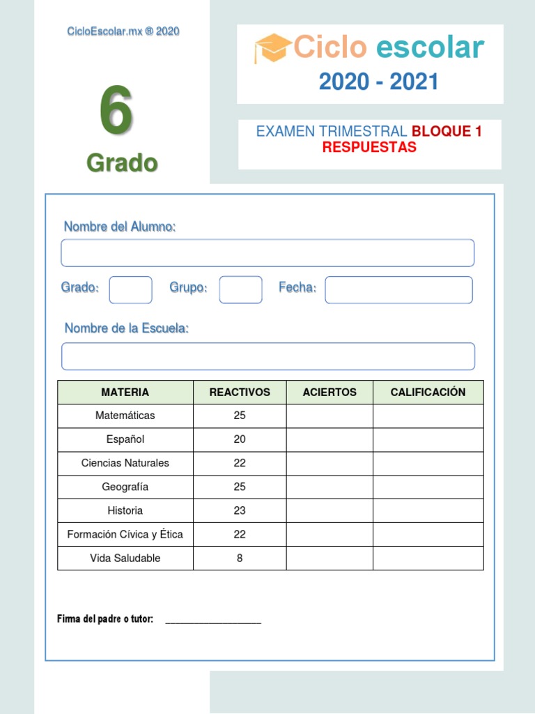 Pdf examen santillana 6 grado.